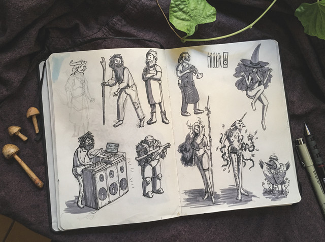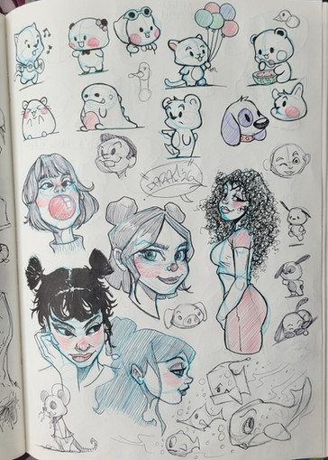 #bunny #characterdesign #chipmunk #girl #guitarist #mobster #pencildrawing #penguins #shark #sketchbook