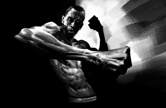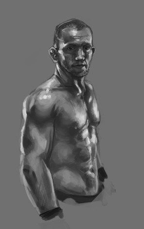 Готино, но ми се струва че различната разработка на тялото спрямо лицето прави второто да контрастира като по-cartoon. Съсредотчението е било върху плата, където си е супер всичко, но вниманието привлича лицето, понеже е по-светло. А, и много красива ръка (пръсти, длан)!