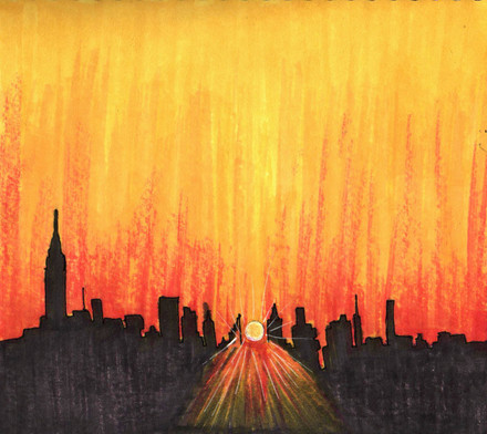 its a decent drawing really - its abstract, and its open to interpretation. But with that said, its rich with imagery which the viewer should project into it. If taken literally though, its a splatter of colours...