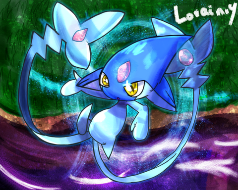 holy jeebus this looks so amaze! O: I love the water and the blue and the azelf and the background and... the... everything! I LOVE IT AAAAALL!