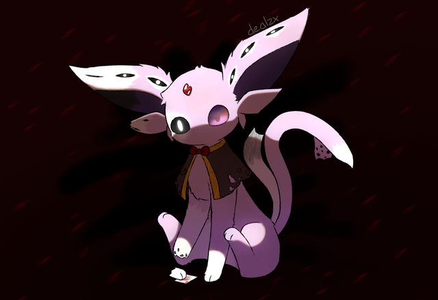 makes a lot of sense to me if a newly evolved espeon is just getting used to their psychic powers,... and end up finding out things they do not want to hear, haha. who knows how brief this moment is... with those red eyes.