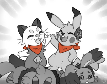 Commission for Yakalentos . Sorry about the wait!This is her team, Team Light Keepers! Thought I'd try a light-themed thing to go with their name. ^^Β