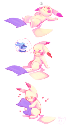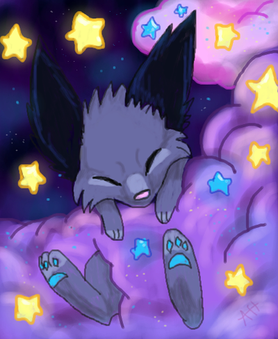 He really looks cute! Also his pose looks so perfectly fitting! Hanging all limply on this cloud, almost falling off and only his head very slightly raised, combined with his expression, just perfect