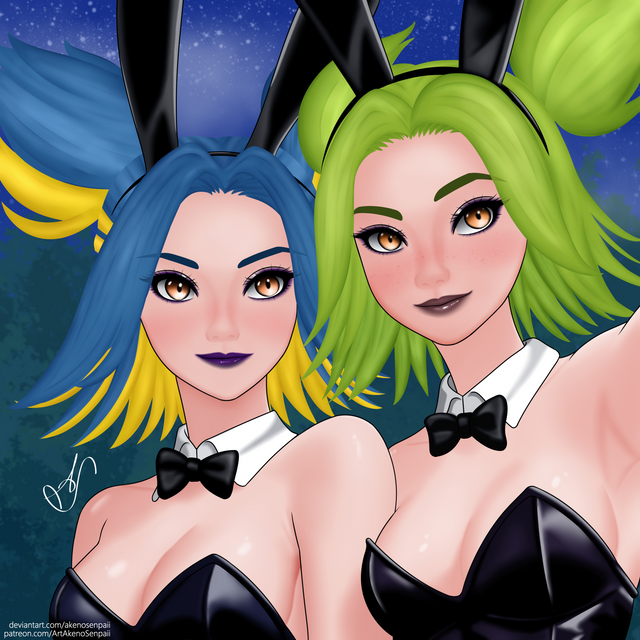 So I take it this is Riven in two different attires: her usual one as a bunny girl and a new one in battle gear, right?