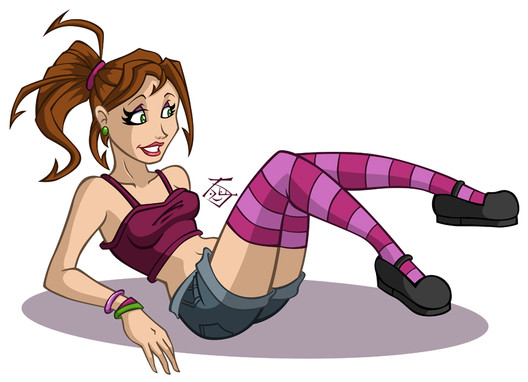 Simple quickie before I go to school and work on other things! Aside from being a simple piece, I was experimenting with more clothing folds/wrinkles as you can she's tugging her shirt down.Β