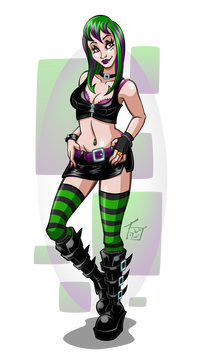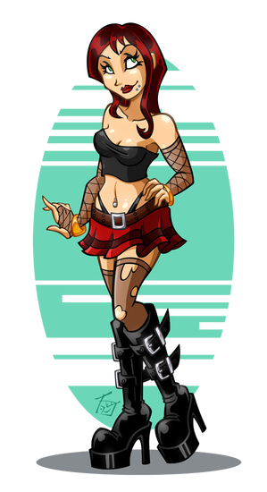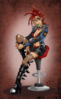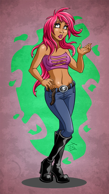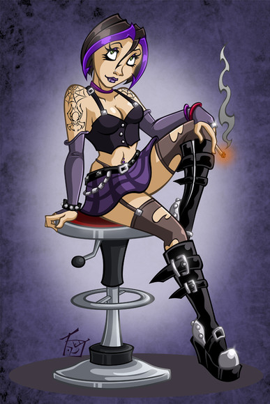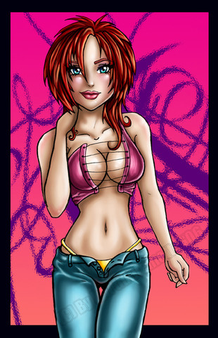 After submitting this piece with different face styles fav.me/d6tsb1i , I had positive responses about style 3. So I decided to do a pinup somewhat similar to that style. Upon finishing up the line work, I felt that simple cell shading wouldn't do the style justice. So I went off n experimented with different coloring styles that I thought would work. I took a while just to find out how I wanted to color this piece. I created different brushes, looked at tutorials, looked at other artists' drawings just to find the right coloring style... Took longer than I expected and I sacrificed homework time to do this lol.