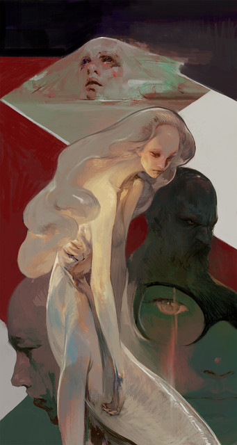 I really like the way the figures blend into each other, wonderful colors and brushwork as always