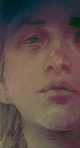 I love its grayscale and red over tones, its as if shes feeling anxious.