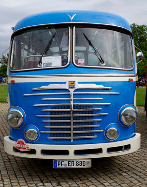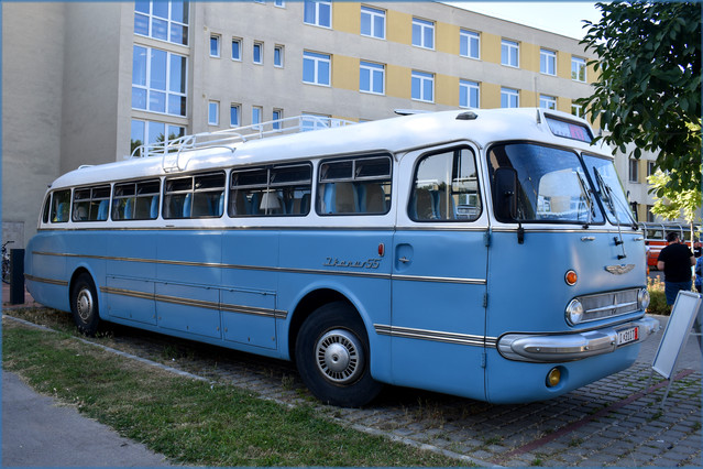 Ikarus 180 and Ikarus 620 side by side on Vintage Commercial Vehicle Meeting at Veresegyház, Hungary, Europe. The 180 (behind) was the first factory-built articulated model (designed by Laszlo Finta, production started in 1961). Only one sample preserved but it is in running conditions. The 620 is even elder, from 1955 (designed by Frigyes Szirotta). Its engine was located beside the driver. For those who travelled with them, the most remarkable features were the duvet that drivers used to cover the engine compartment for noise reduction (in vain), and the typical truck ramble of the 147HP Csepel D614 gasoline engine (licenced from Steyr). I was 4 or 5 when I travellled 620 for last time and have faint memories of The Bus (as I remembered them): the loud engine noise, the bench-like row of seats behind the driver's cabin, facing rearward, and the oily smell...This example was literally rebuild from its corpse: it was used as a hen house. It has a special "buddy": an ÁMG 406 trailer that was precedessor of later articulated busses. BKV FAÜ (a bus maintenance workshop of the Budapest Public Transport company) experimented with articulated busses, too, and used 620 as a testbed, but as far as I know none remained.