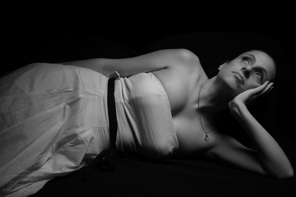 I definitely agree with your critique! I'd left the negative space on the left and avoid the darkened area, but the location was not allowed it. This shot was made during an art nude workshop and the model was posing on a balcony in a pretty village with houses around us everywhere. We had large white drapes to cover her from the curious (and ocassionally malevolent) eyes, but keep as much light as we can.