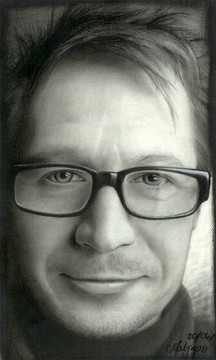 Nice pencil work; good job on the glasses and the transparency. Good contrast!