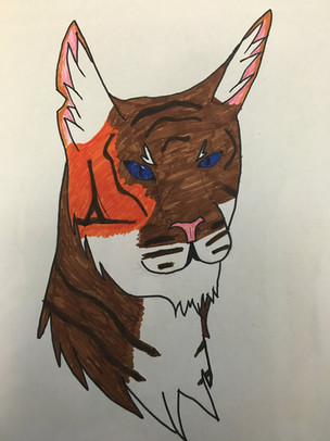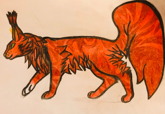 I know the art and scanning is terrible I tried to make him fluffy but i struggled to do it in a way that i liked. and i couldn't get the shape of his face right either.... the colouring is terrible and i winged the markings (slightly based off Captain Morwen 's drawing of him, but this is the other side). Oh well, it's a start.