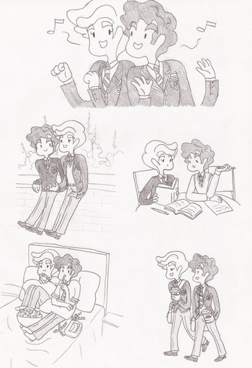 I saw the title and immediately thought of "Harry Potter". Like they are from different houses and come to the library to secretly admire each other And then they realize that they both in love with each other