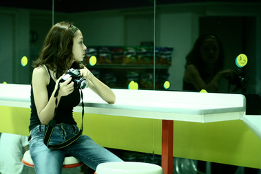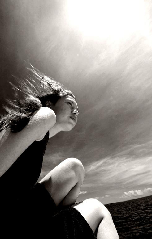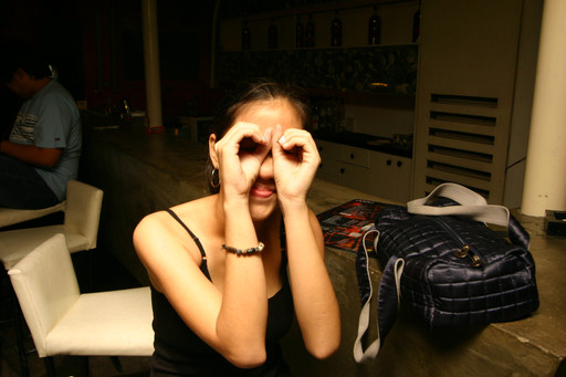 cool shot, the ultra-low focal length adds a nice effect. and makes her look like a towering giant.