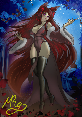 #originalcharacter #fox #redhair #kitsune #commission #dress #artwork #digital #fantasy #female #flower #girl #outfit #red #sfw #she #tail #art #com