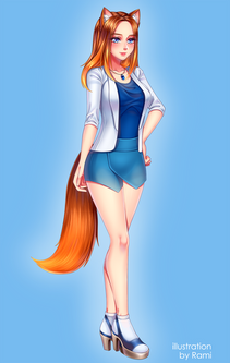 #fox #digitalart #commission #artwork #digital #fantasy #female #girl #heels #kitsune #office #outfit #sfw #she #tail #art #com