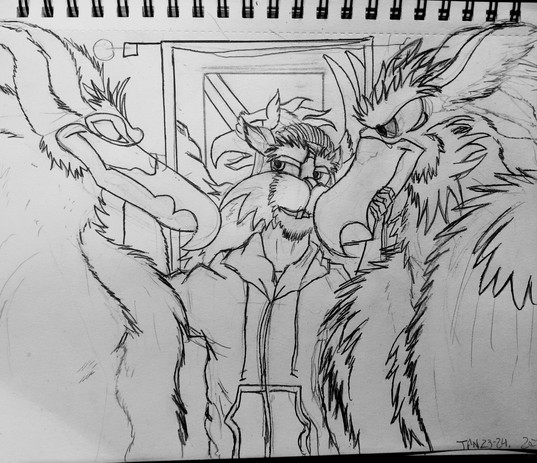 Flying and riding bareback on a gryphon while high from smoking weed everyday must've been a wild ride for Corvus. Hey, Glendra, you wanna hit it? (coughing smoke) You wanna smoke, gryphon?Glendra (C)