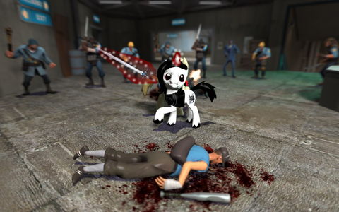 "the falling of the pony and the human"Well, this little Screenshot i made it a bit time ago (about 2 or 3 weeks ago) i cannot upload it before because i was very busy and now i found a little space for upload that screen, it's a little test with the use of the Chroma key (yeah the green panels) and i think i do it good