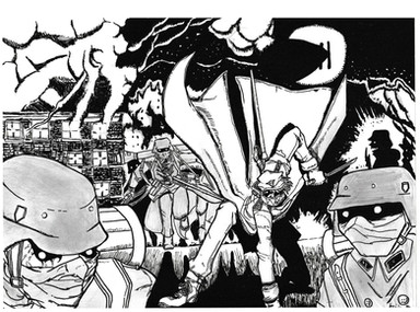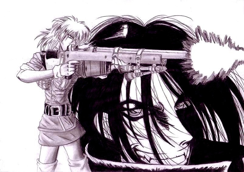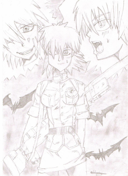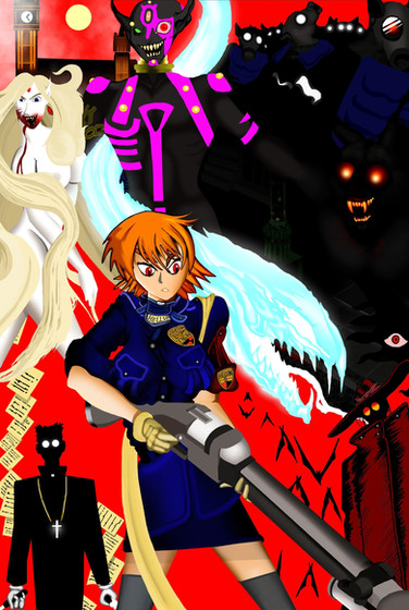 I love the central focus on Seras here. Also, devil-like Incognito and naked Laura (as well as the SAS freaks and Sett) are a great touch.