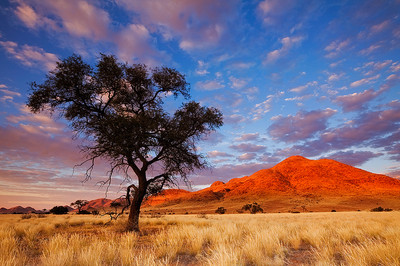 a Withered camel Thorn tree stands out in the semi desert grasslands of the ancient NamibMore image, info, tutorials and resources on landscape photography on my blog - [link]