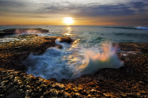 I love the reflection of the sun off the rock and the sea. TWO THUMBS UP!! d(^o^)b