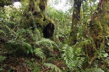 Fallen trees bar a river run that is relatively dry in autumn, but may be in flood at times in the rainy season
