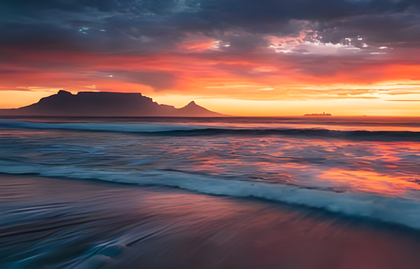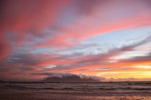 I really like the warm and cool pallete of the sky juxtaposed with the wispy qualities of the sea here. Table mountain seems quieted by the surroundings. Your gallery is quite nice. Thank you.