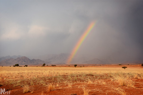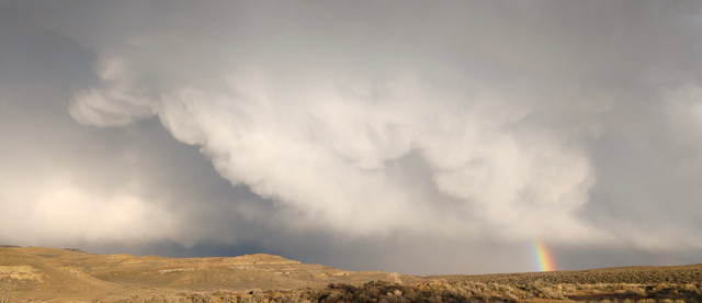 Incredible display of nature to see rainclouds and a rainbow amidst such dry and desolate conditions, and you captured it very well!