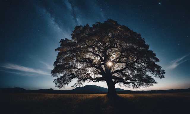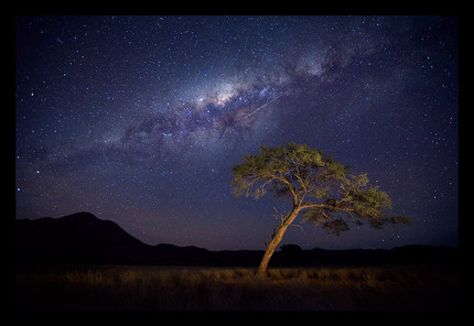 What a beautiful picture. That starry sky is truly amazing. And that tree in the middle gives it a mysterious charm. Lovely!