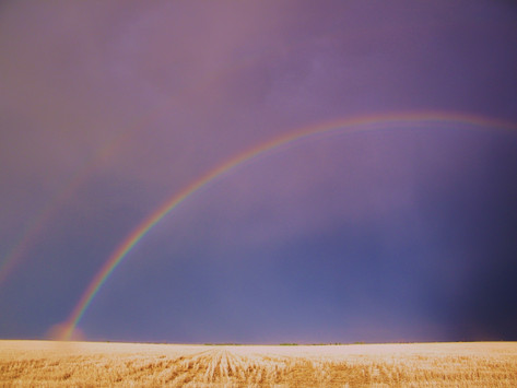 The movement of elements in a landscape through long shutter speeds is something I've been toying with lately, it's great to see it executed so well here! I love the way the tilted horizon interacts with the mountains and line of the rainbow. Those elements combined with the motion in the foreground are reminiscent of expanding lungs, it makes this photo feel like a living being to me. I would love to see this in print!