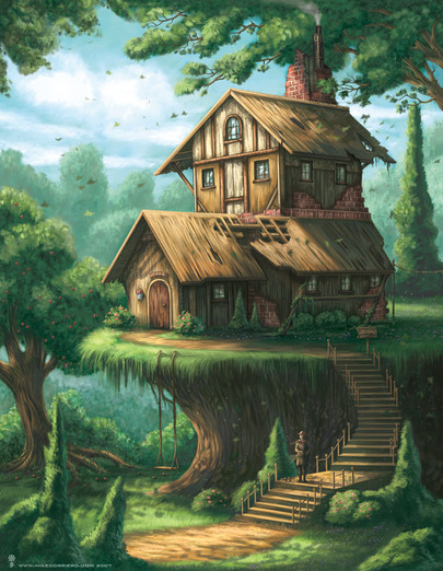 Awesome cottage on the tree somewhere in the world. Surreal image with eerie and mysterious mood by Houk.photomanipulation (software: Photoshop 7). Used 32 my photos.