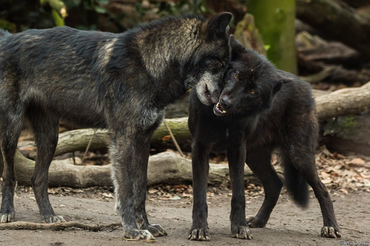 Black phase timber wolf brothers, Seneca and Cayuga, from the Wolf Mountain Nature Center in Smyrna, NY. I love when it rains since it brings out the contrast in their markings and makes everything more vibrant.www.thewolfmountainnaturecente…
