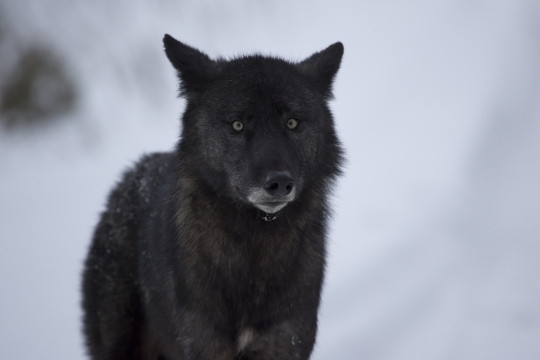 The very handsome black phase timber wolf, Seneca, from The Wolf Mountain Nature Center in Smyrna, NY. The center is literally on top of a small mountain and is very hard to get to in the winter. However, the wolves are so much more intense and excited when the snow falls which always makes it worth it.While wolves as a species have always been misunderstood and persecuted, black wolves have faced even more extreme legends, including the belief that they were evil spirits or that they dug up graves to eat the bodies (which is clearly untrue).