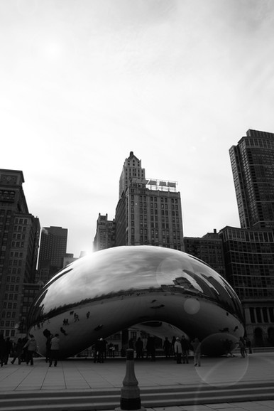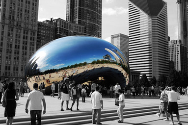 I like how everything is in blak and white except for the reflections of the people and stuff!