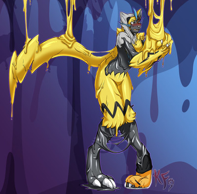 #corruption #electric #goo #latex #mc #mindcontrol #pokemon #power #rubber #tf #transformation #zeraora #zeraora_pokemon