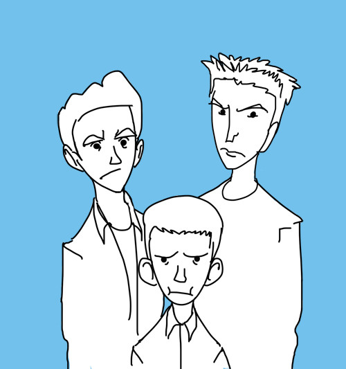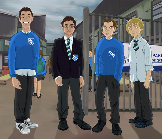 It appears that I'm the only person in Los Angeles who watches The Inbetweeners. So I would like to thank BBC America for broadcasting the show just for me. Here is a drawing I did of Joe Thomas, Simon Bird, Blake Harrison, and James Buckley as Simon, Will, Neil and Jay. Watch the show. It's funny.Related content