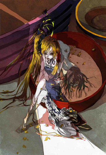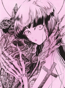 Beautiful details and her hollow expression. This artwork feels like it has a dark side to it