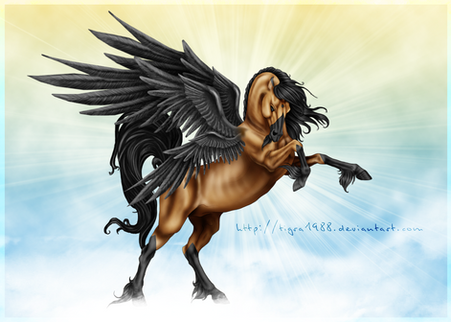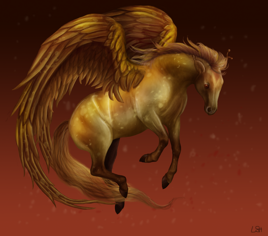 I just had to fav this. Jet looks awsome. You did a splendid job with the shadowing and color tons on the Horse's body and wings. Not to mention the golden back ground. Sheesh makes you want to be right up there with him. The obvious critic has already been touched upon by other so no need from me. I think you did a wonderful job non the less. Fantastic.