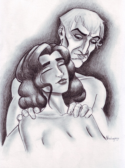 *sigh* If this were a romance novel, I'd be blinking my eyes with romance tempered fascination. Since it's Frollo though, I'm slightly disgusted... and strangely content. This was the kind of feeling I was trying to capture during the "hair sniff of death" bit in Lux Nova, my 21st century version of HoND.