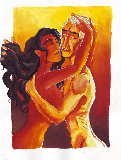 He leant into her, his long nose once again almost in her hair. His breath was hot on her face. He inhaled, deeply. "You smell...like Eden," he crooned in her ear, "All exotic and so forbidden!"He almost nuzzled her(close, but not yet crossing his self imposed boundary) and his scent drifted into her nostrils. Hyssop. Myrrh. Lilac. He smelled expensive. Unobtainable. Like a fallen angel. Or more likely, one about to fall.....