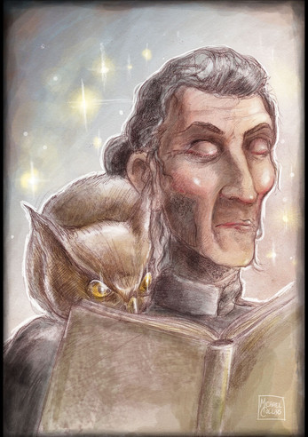 Claude Frollo and his pet raven. In my mind, this totally fits.Media used: Ballpoint pen and a lot of patience.