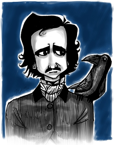 Love the raven, altho I like to imagine him with a black cat.