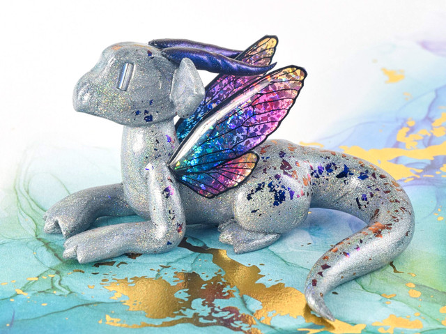 Happy Valentine's Day, from my heart to yours~Just a little pearly gray dragon holding a rhinestone heart. I had several new clay colors to try out, so I used them all here. Not a huge fan of that coral/salmon color, though I think it could look nice paired with some different colors. The light purple is kind of meh too. I think I'd like it more if it were more pastel. Oh well. I do think the graphite pearl clay is pretty great - saves me from having to mix up my own shades of gunmetal silver.
