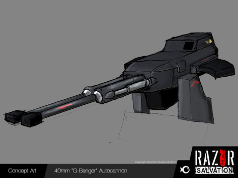 [link]Again, another opportunity to show a contrast between the grunts and the aliens who manufacture them, we wanted soemthing that would appear fairly technologically advanced, but at the same time rather crude. THis lead to combining elements of the portal gun (the smooth rounded handle) and a much more rigid barrel. Ribbing on the top made it appear like a chainsaw, and was inspired by the Prawn weapons from District 9. Again, we used glowing batteries
