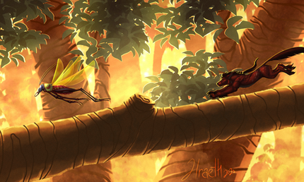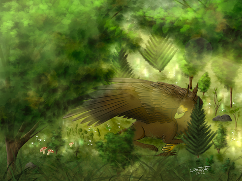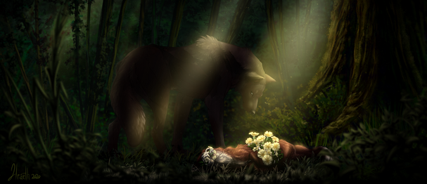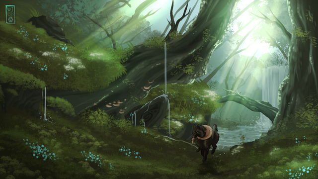 Having received news of an ominous blight within the root of the Sapling, Morioch makes a detour through the area of the Great Root. The injuries sustained during his hunting exploits are not so serious as to keep him from looking through the area to search for any sign of the malady within the Sapling's offshoots or other woodland specimens.