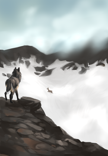 This is stunning! That background is gorgeous, I love how you did the snow, it really feels COLD. I wanna climb in that cave with Kviir too and get out of that storm.