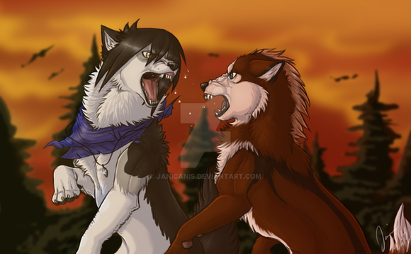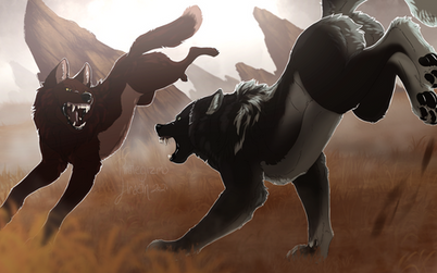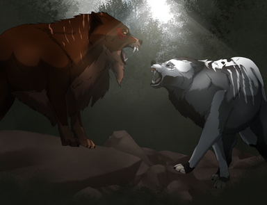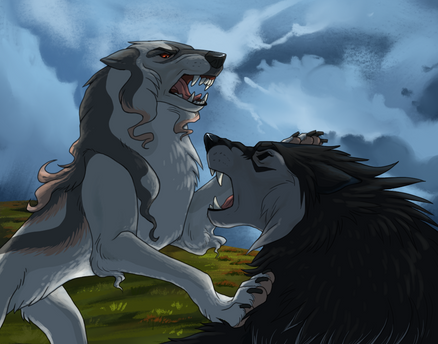 Chance and circumstance had led them to catching sight of one another from across the expanse of meadow while trailing the promising scent of prey. While another wolf hadn't been their quarry, neither was willing to allow the other to pass any further without conflict. Although Stonehaven had made its intolerance of Kol irrefutably clear, Helfysir felt it could be made clearer yet. And for the Kol? Vergil was undeterred. He and his pack had been born of discrimination and there was no better time to show that the northern wolves would meet resistance head-on.