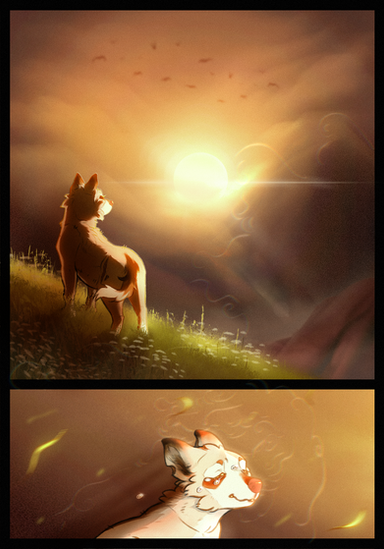 WOW. Okay then. The second page got even more lovely? The level of time and energy you must have put into the flowers, my god. And I really, really think that the angle on the second panel is fantastic. I love how it looks down on them from the viewpoint of the sun before it swaps to their viewpoint looking up and finally back, with the reflection of the sun in Vashti's eye. Speaking of that, the way you did the reflection is incredibly awesome. I love how her pupil is all contracted in the sunlight and everything. Idk how intentional that is, but it's perfect!