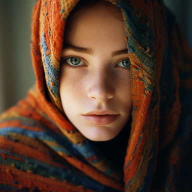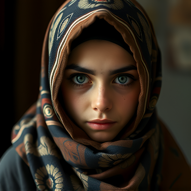 #ai #beautiful #beauty #blue #dreamy #eyes #girl #hijab #lips #sad #scarf #woman #yellow #art #midjourney