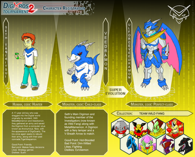 In fact, at the moment, Theldy havn't hunted any digimon and Veemon havn't unlocked his shou shinka, in my version. But, you can assume that he hunted the mons that arrange you. That won't be a problem. After all, only one version will be keep. ^^